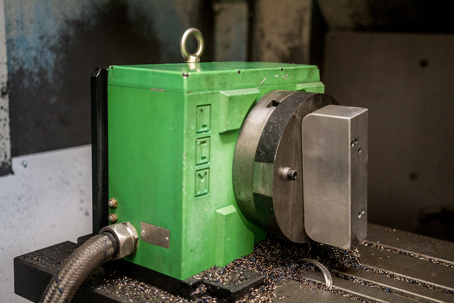 Particolare di una tavola girevole LCM in grado di svolgere lavorazioni esclusive, e possiede queste caratteristiche: